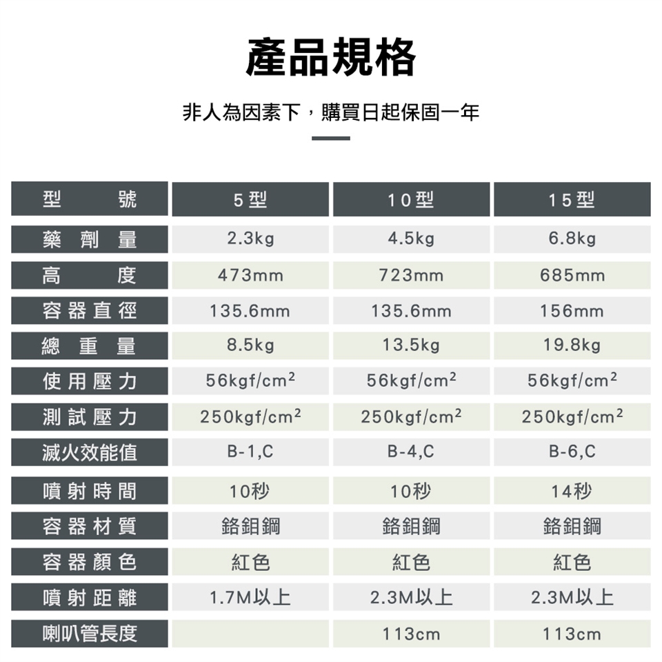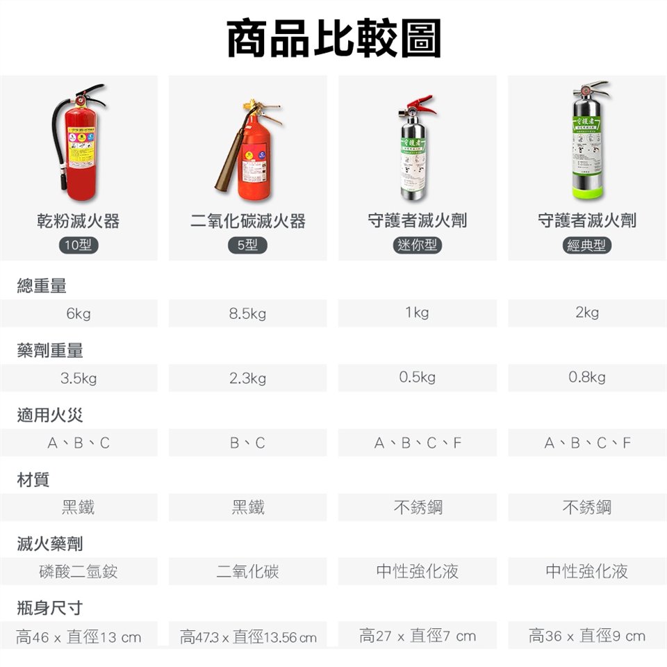 拔出插銷,將噴嘴對準火源,按壓握把即可放射滅火。