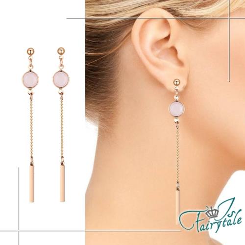 【伊飾童話】圓型白寶石*極簡垂墜玫瑰金耳環