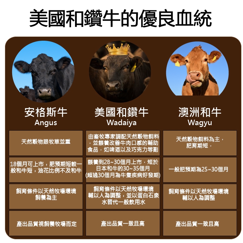 四、無任何添加及醃漬嫩化,最佳賞味熟度為5-7分熟,熟度愈高肉質愈有嚼勁.