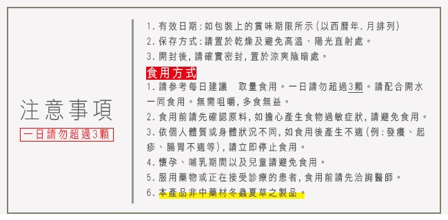 8.一日請勿超過4顆。