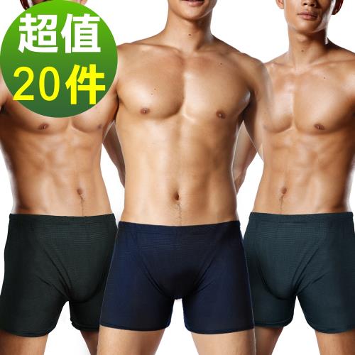 ★超狂20件★TIKU 梯酷 ~ 冰絲格紋涼感 平口男內褲 -超值20件組(顏色隨機)
