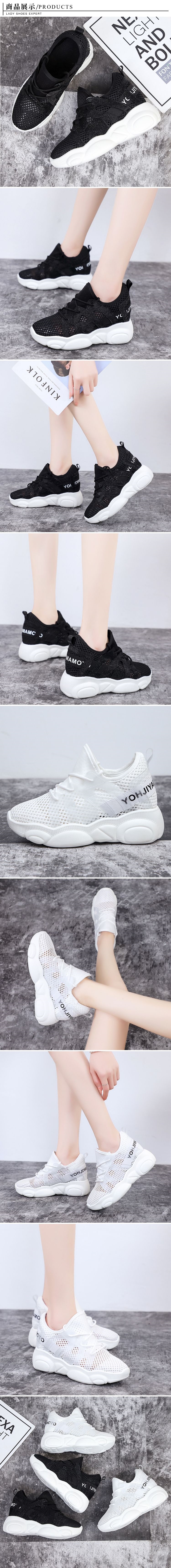 【HMH】飛織網面透氣縷空透明印字帶拼接內增高復古休閒鞋(2色任選)