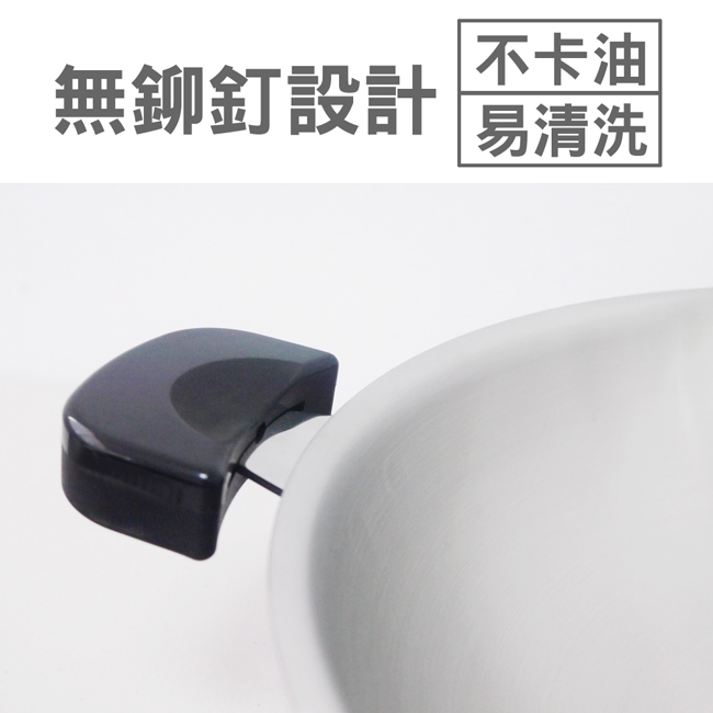 ◎無鉚釘設計不卡油污、易清洗