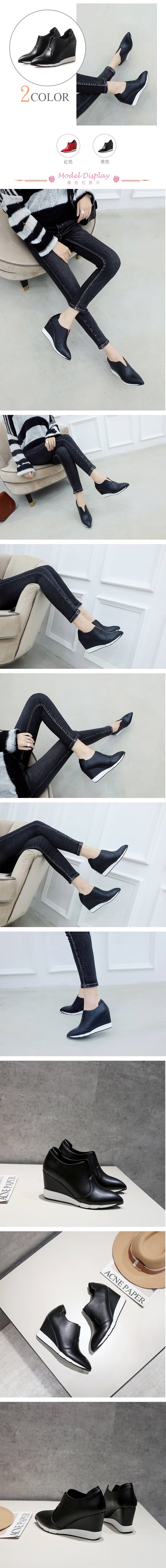 【Kissxxx】美腳效果尖頭挖V深口坡跟單鞋黑