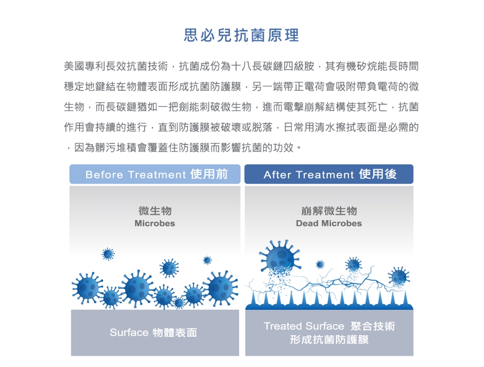 2.用途:噴灑於物體表面可形成長效抗菌防護膜,有效隔絕病原菌的附著。(一天可多次使用)