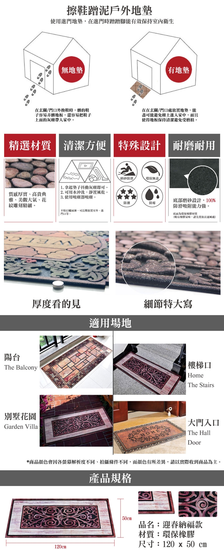 ※地墊由環保橡膠製成,故會有些許橡膠味,屬正常現象,對人體無害;將地墊放置在通風處,味道會散去