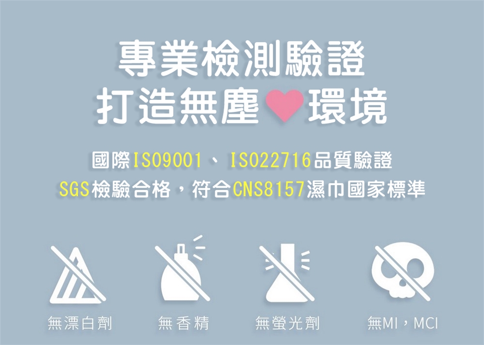 ◎ 生醫級無塵室10000級環境及全自動濕巾機生產。