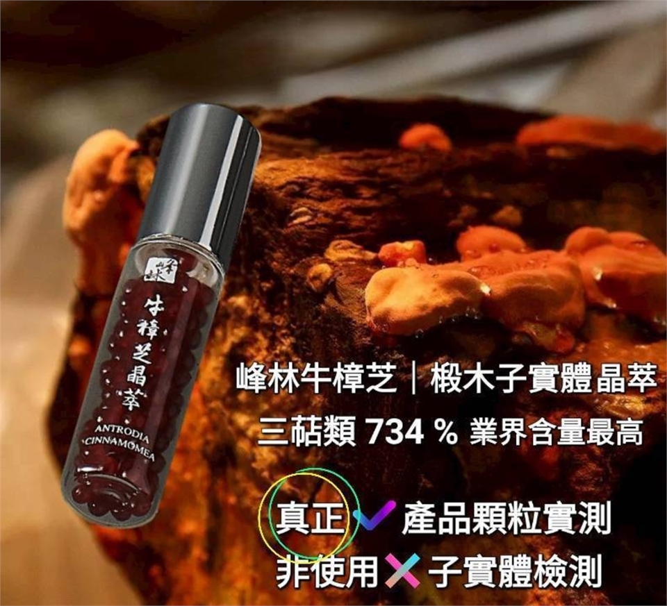 有些牛樟芝業者會使用 [ 牛樟芝子實體 ] 檢測三萜類%數,來當做自家產品的三萜類%數使用,但這明顯誤導消費者!因您是購買 [ 牛樟芝產品 ] 不是購買 [ 牛樟芝子實體 ] ,要真正吃到三萜類成份,要選購使用 [ 產品內容物 ] 檢測三萜類的牛樟芝產品喔!