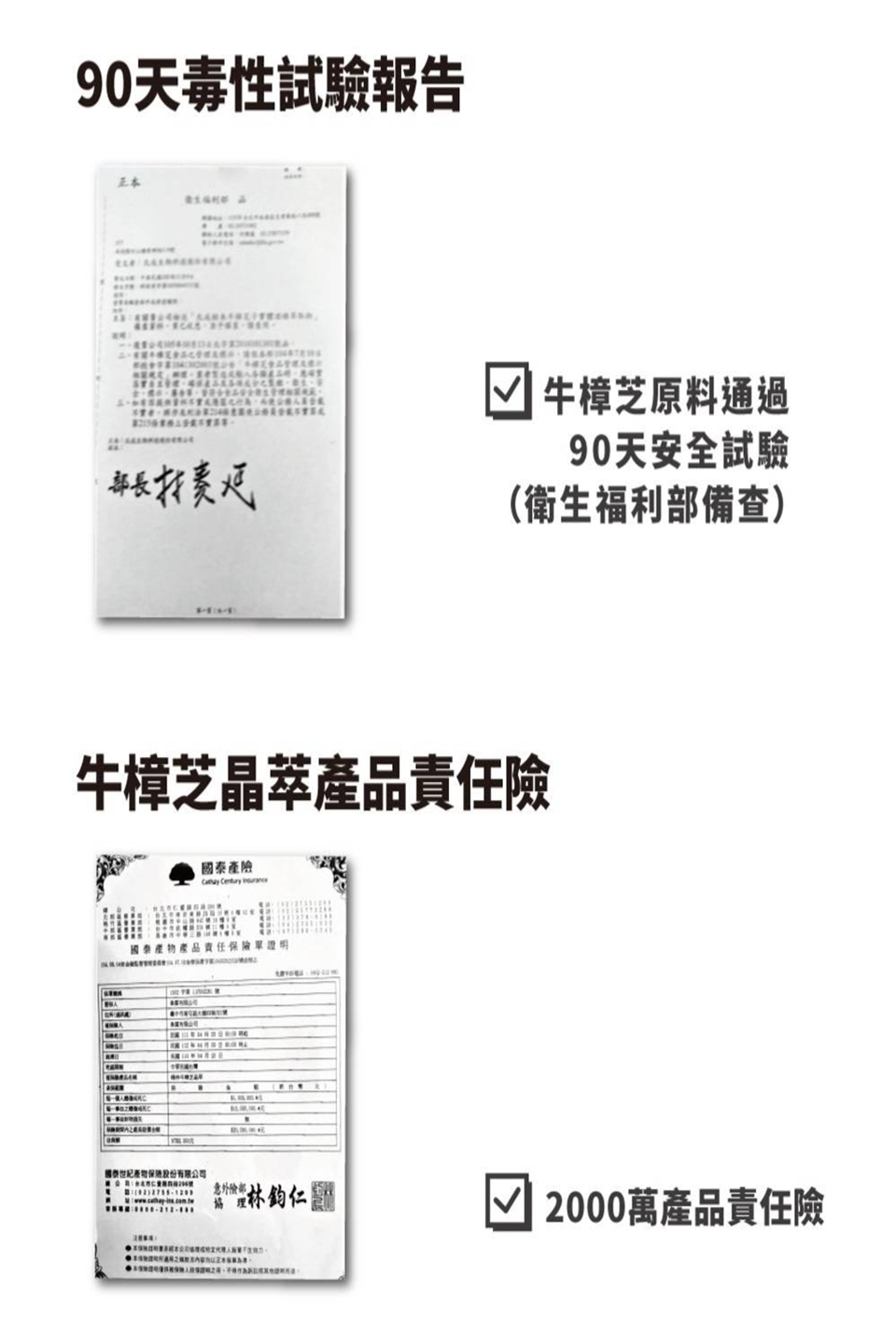 *本產品牛樟芝原料已完成90天無毒實驗