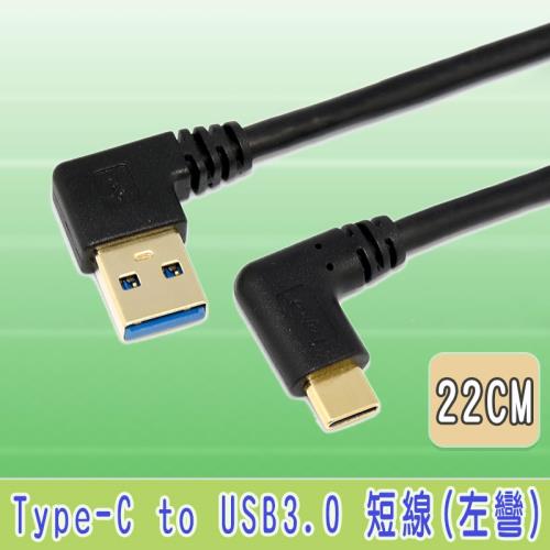 fujiei Type C 彎頭 USB3.0 A 公左彎傳輸充電短線 22cm (TY0021)