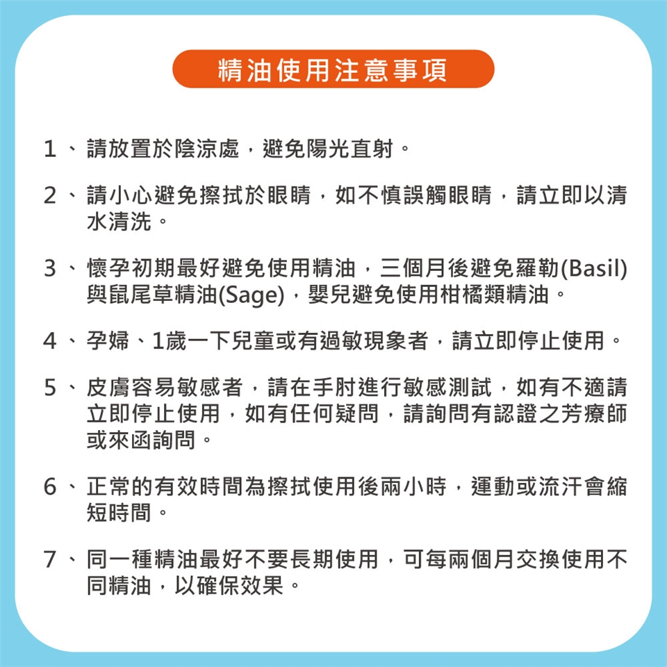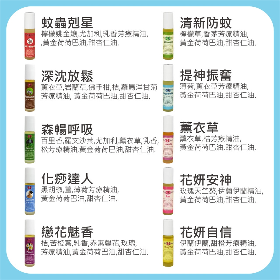 成份:薄荷精油、薰衣草精油、黃金荷荷巴油、甜杏仁 。