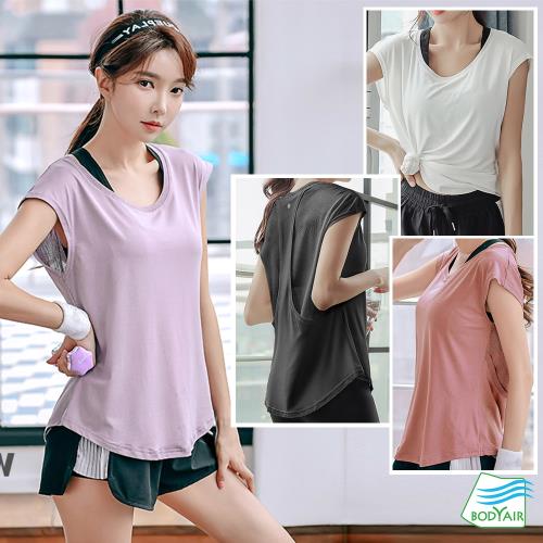 【BODYAIR嚴選】寬版挖背紗罩衫上衣(瑜珈.慢跑.運動.健身.透氣.舞蹈.運動服)