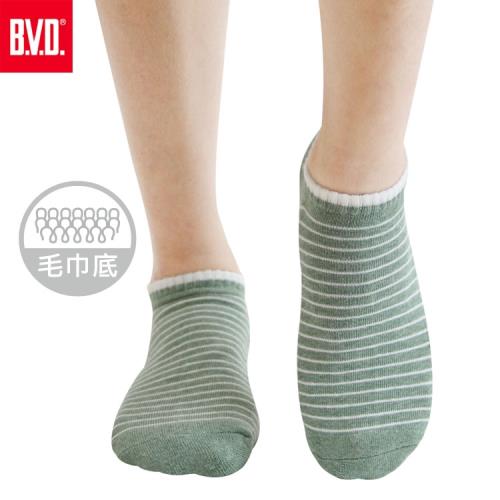【BVD】(新色上市!)條紋毛巾底女踝襪4雙組(B208襪子-女襪)