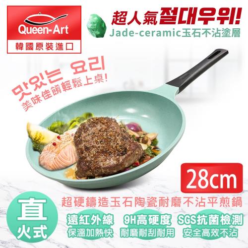 韓國Queen Art超硬鑄造玉石陶瓷耐磨不沾平煎鍋28CM