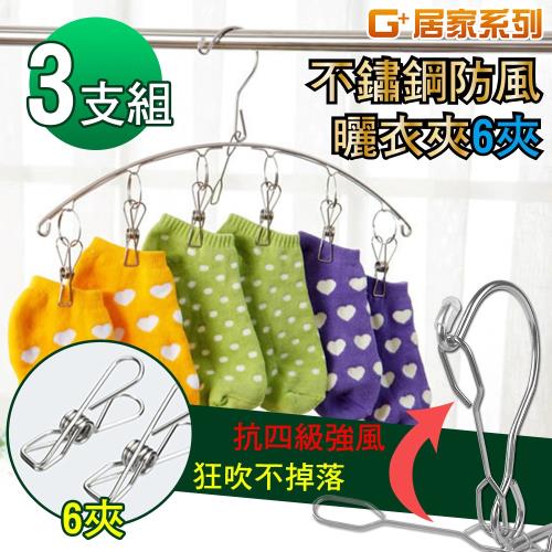 G+居家 不鏽鋼防風6夾曬衣夾x3入