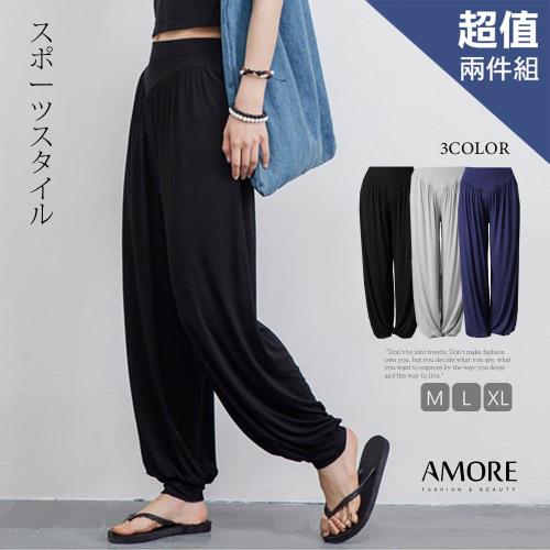 (買1送1)AM艾莫兒 百搭寬鬆飄逸棉質時尚瑜珈褲