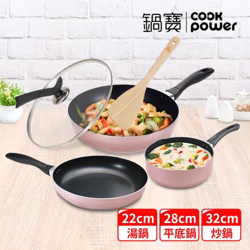 【CookPower鍋寶】金鑽不沾全能五件組(32炒鍋+28煎鍋+22湯鍋+蓋+鏟) (兩色任選)