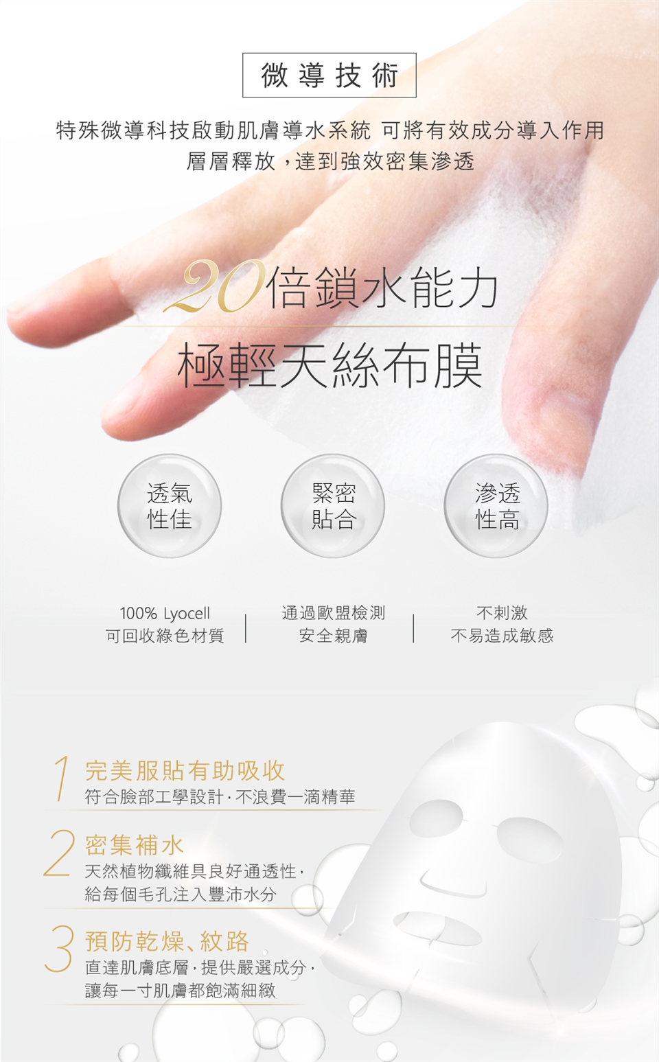 1.臉部清潔後,取出面膜直接敷於臉部。