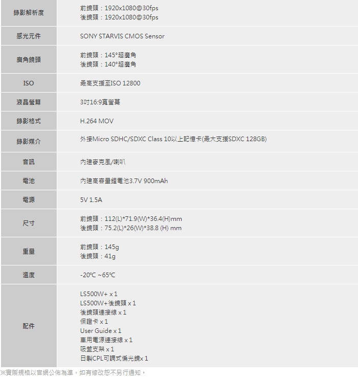 前後雙向高畫質1080p