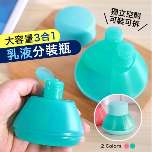 ◎ 由3個60ml容量瓶體構成,小巧便攜,可拆可裝洗髮水、沐浴露等三種液體,超級方便!