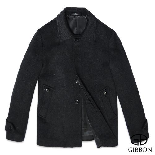 GIBBON 歐風雕花圓釦羊毛大衣‧斜紋灰