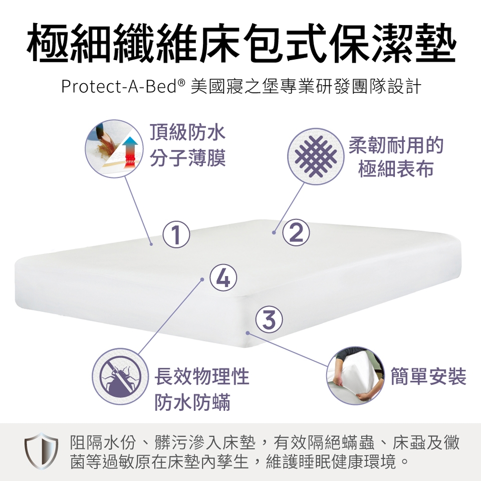 ☆優異防水特性能阻隔水及髒汙滲入床墊
