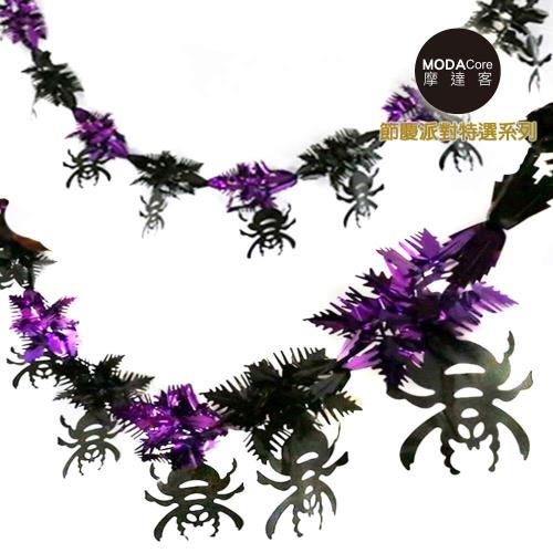 摩達客★萬聖節派對佈置裝飾★錫箔紫黑蜘蛛拉條拉花(兩入組)