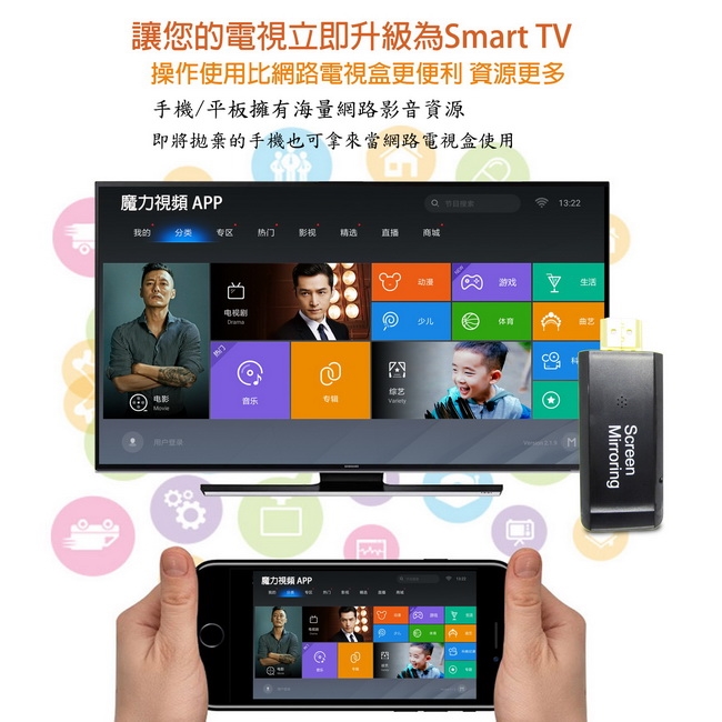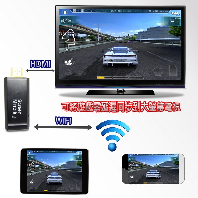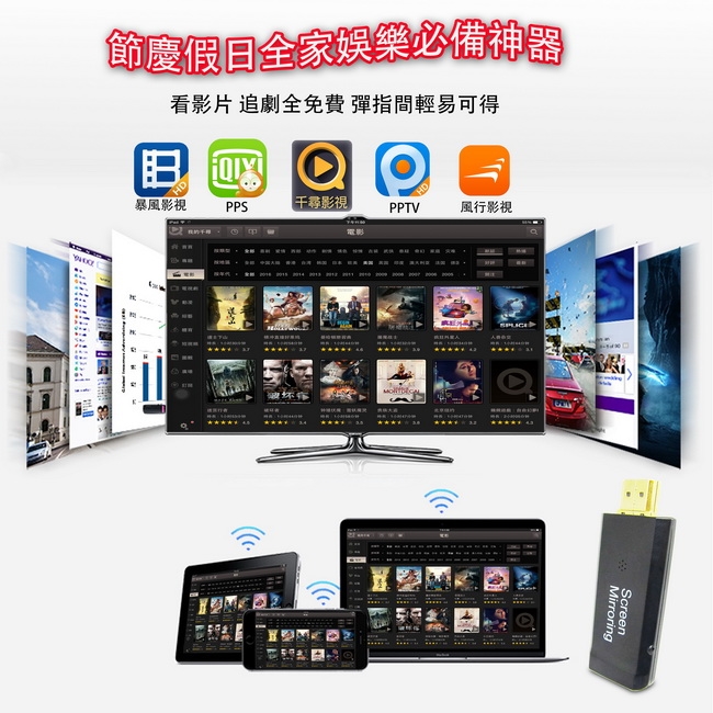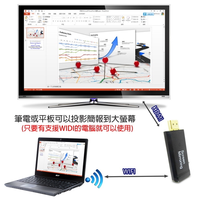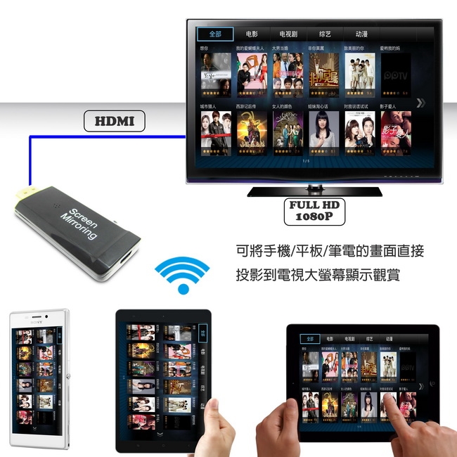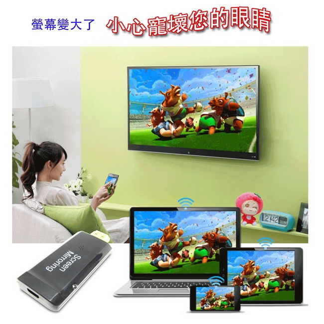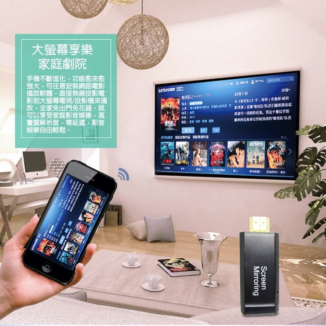可將手機/平板/筆電螢幕鏡像到大螢幕電視或投影機。