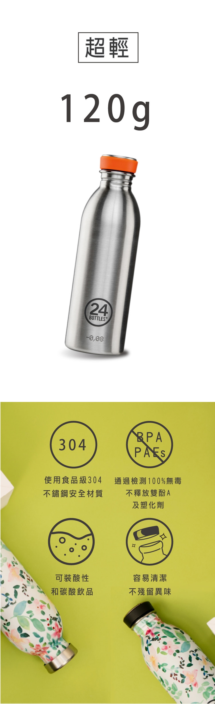 *此不鏽鋼水瓶非雙層設計,建議水溫45度不燙手
