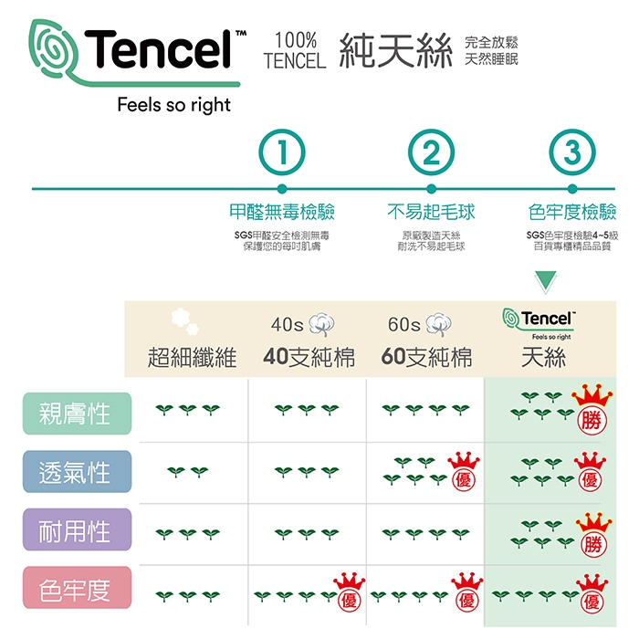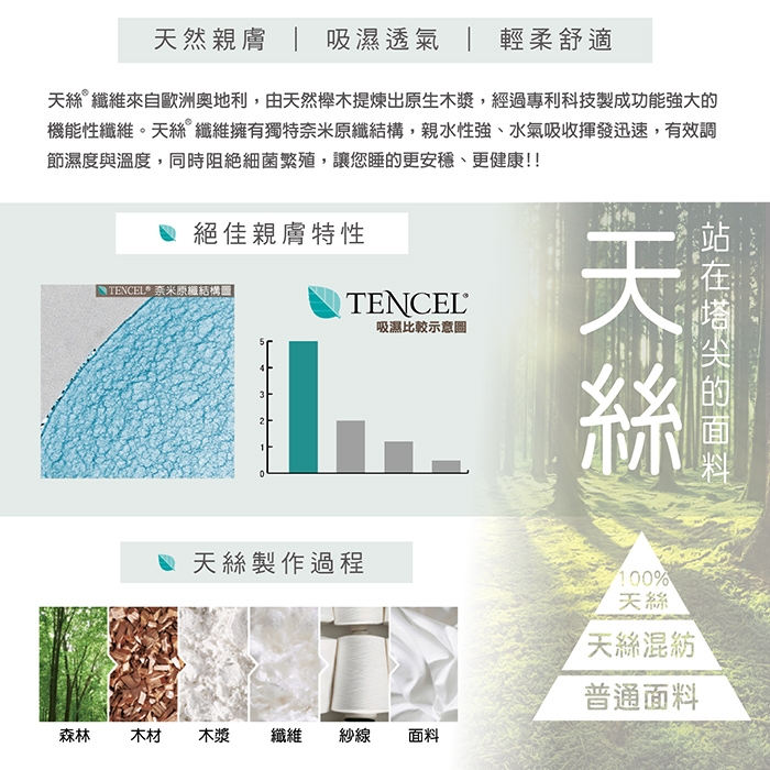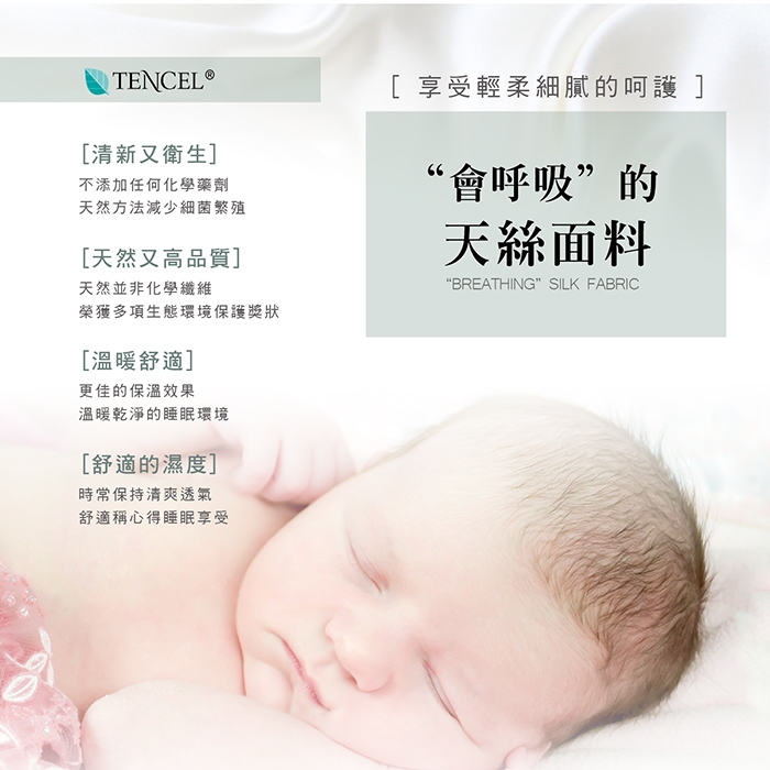 ★天絲是最天然衛生的纖維,排濕性佳透氣姓好,使用時乾爽舒適,不會有悶熱感。