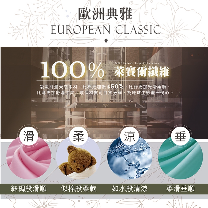 ★採用100%頂級天絲製做,手感細緻觸感柔軟,讓您擁有天然健康的優質睡眠環境。