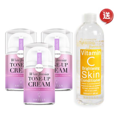 【SHILLS 舒兒絲】抗UV美白濾鏡小蒼蘭素顏霜3入+贈美白化妝水(小姐不熙娣)