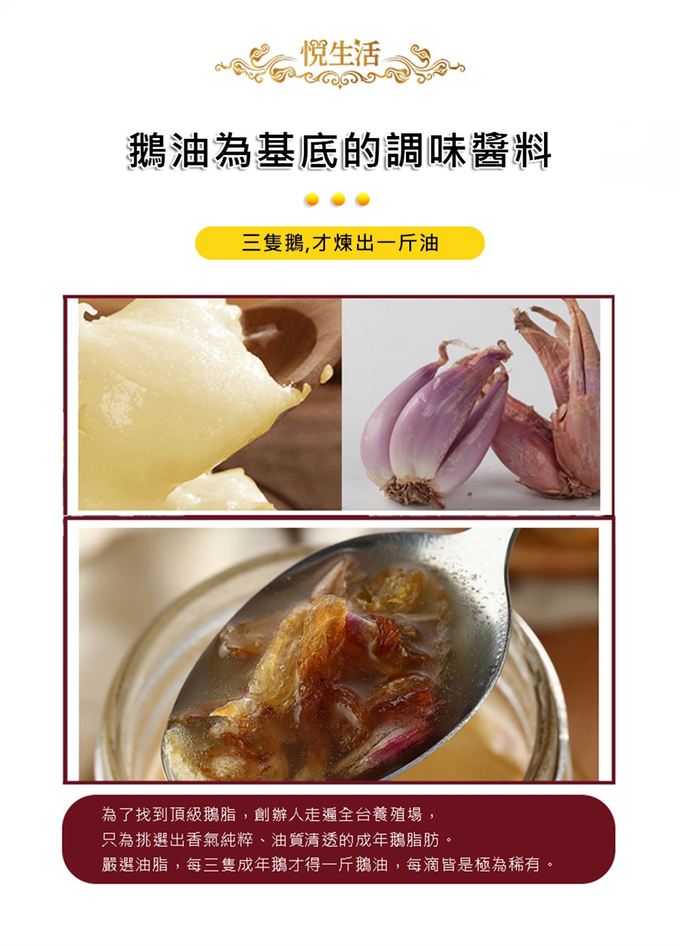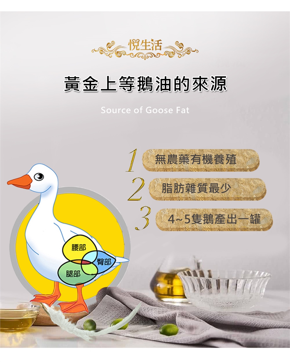 獨特油水分離技術以保最精純鵝油,並精心確保鵝隻健康及油品提煉的品質