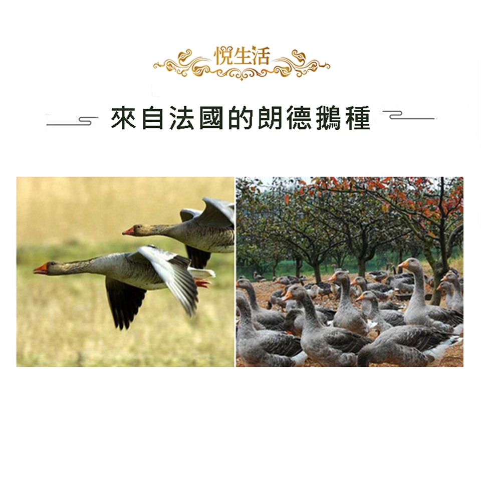 特選來自法國朗德鵝種,適應環境能力強,質地細膩、味道獨特,營養價值很高,