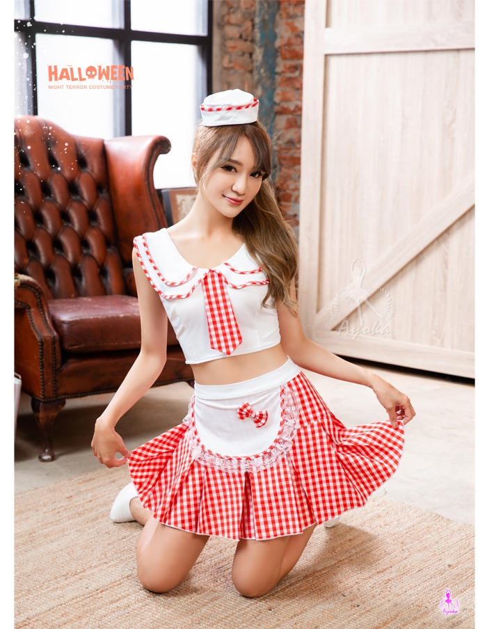 此款紅白格紋女僕角色扮演服,