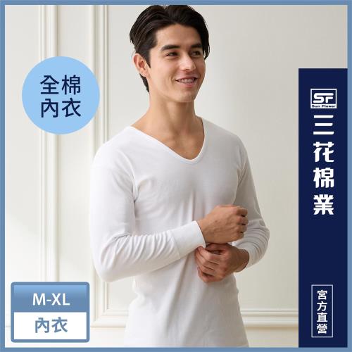 【Sun Flower三花】男長袖內衣.衛生衣.(厚棉U領)(2件組) _白