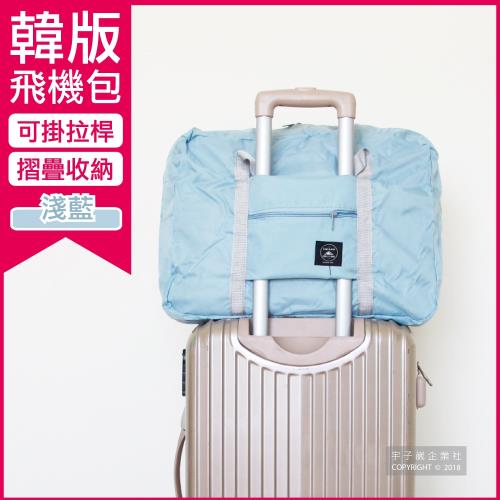 Travel Season-韓版超大容量摺疊旅行袋飛機包-淺藍色(容量24公升 旅行箱/登機箱/收納盒/收納包)