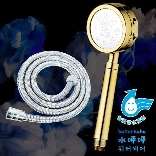 省水標章 水呼呼黃金花灑/金銀雙星三段增壓spa負離子蓮蓬頭(金/銀款任選+不鏽鋼軟管)