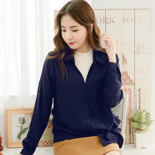 大尺碼-下擺打蝶結長袖襯衫V領似麻紗織布上衣(共二色)lingling