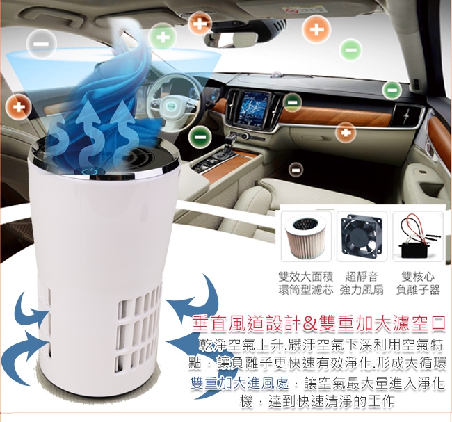 車內空氣的危害大家都不知道,其實在方向盤、按鍵上會附著細菌病毒、空調出風口會有灰塵塵蟎的危機、引擎產生的烟碱、汽油廢氣、汽車的尾氣、車內彌漫的二手烟…等等,這次推薦的就是擁有800萬負離子空氣淨化機,針對小空間像汽車、櫥櫃、廁所…等都相當適合使用