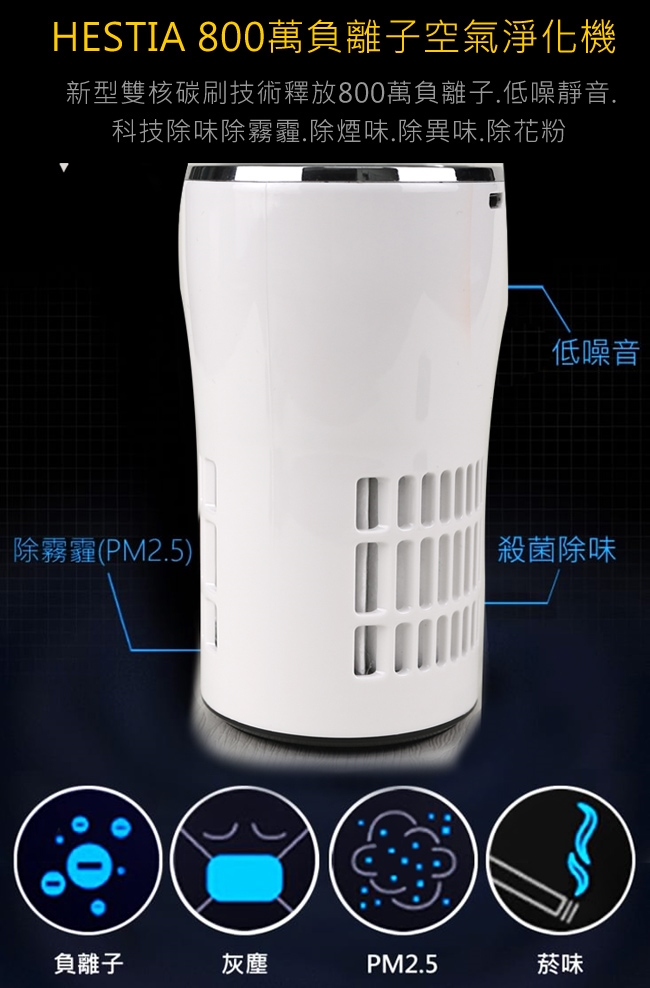 ◆多重核子技術800萬高濃度負離子,快速分離空氣中有害物質,無需耗材,安靜低噪音設計
