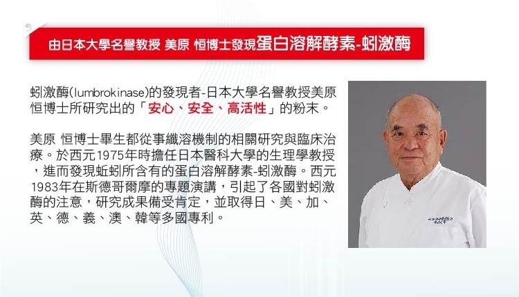 採用日本美原恆醫學博士畢生研發的蚓激酶!