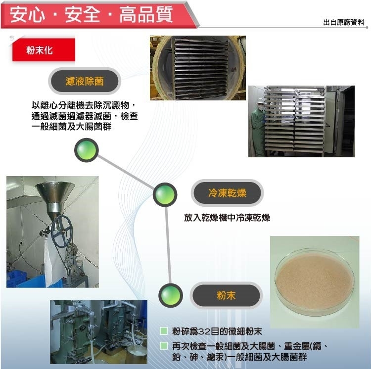 本產品是採用一種棲息在歐美,學名為Lumbricus Rubcllus,長度約5至10公分的紅蚯蚓,含有溶解纖維蛋白的酵素;經過真空冷凍乾燥技術後取得新型溶解酵素,並將其命名為蚓激酶(lumbrokinase)。
