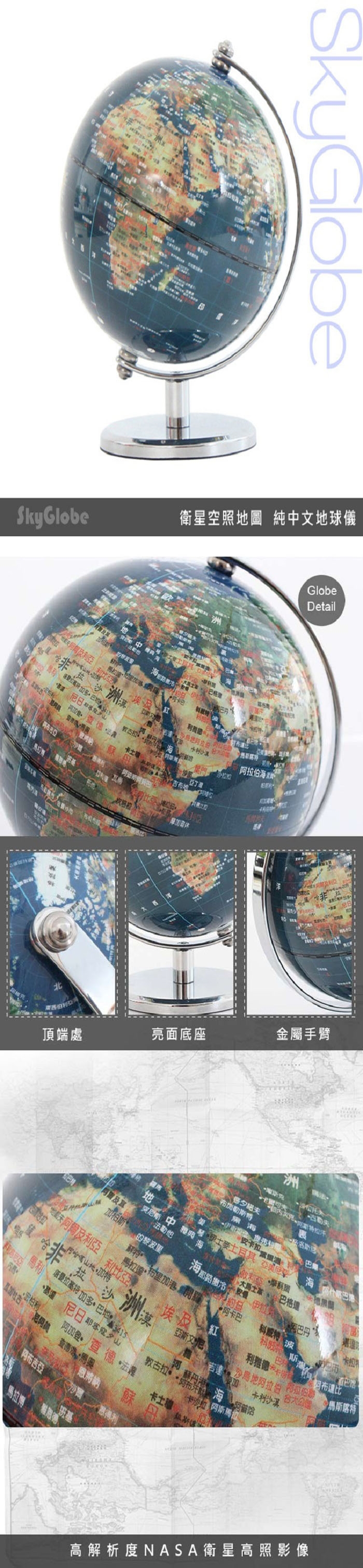 材質:地球儀-耐衝擊聚苯乙烯、底座-金屬電鍍色
