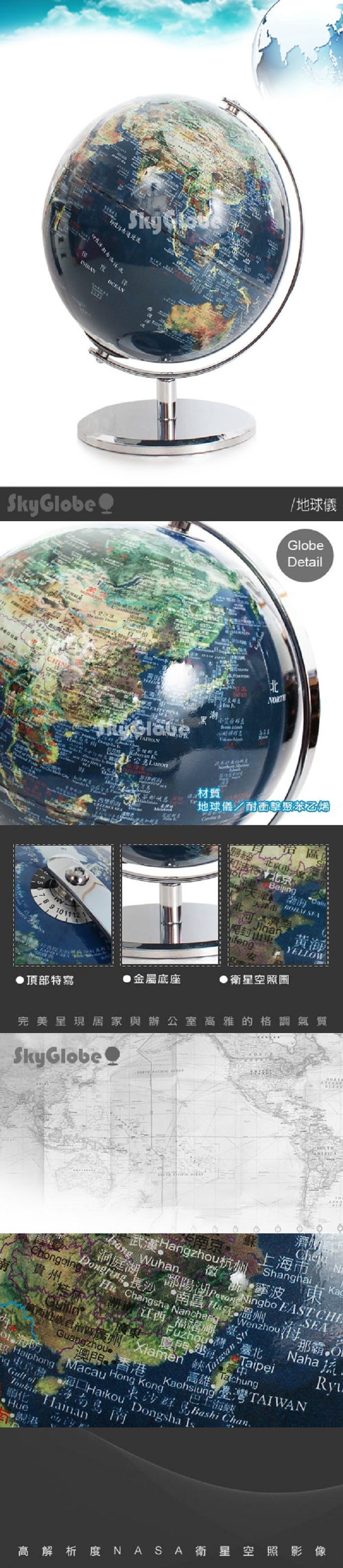 Skyglobe地球儀─每年更新精準衛星地圖,掌握世界清晰面貌,乘著世界潮流向前走,地理學習從此出發!