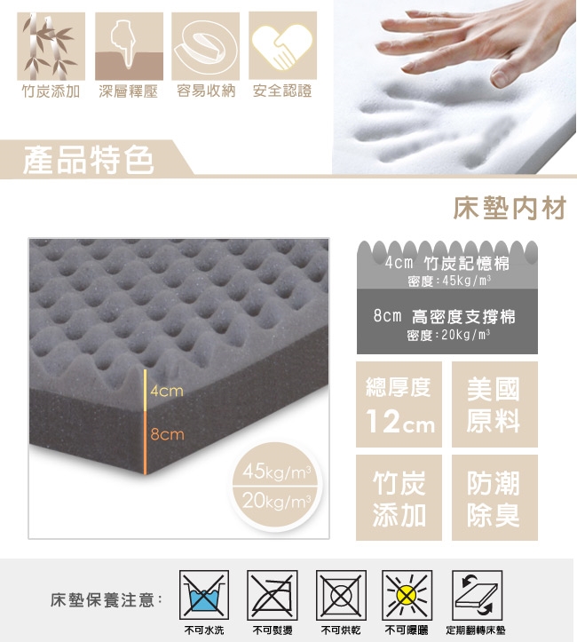 5.床墊製造已考量搬運問題,適當彎折不會破壞其結構。