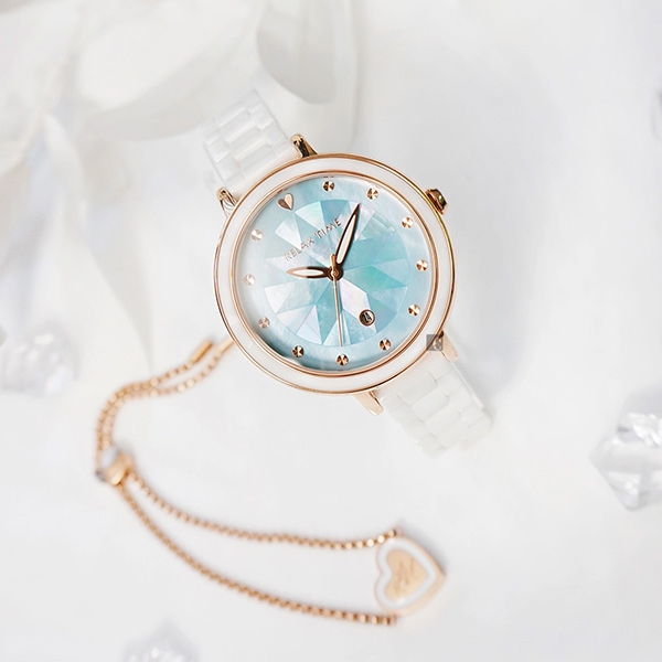 每片錶盤呈現獨一無二的顏色,透過光線每片貝殼折射出豐富的光澤效果!