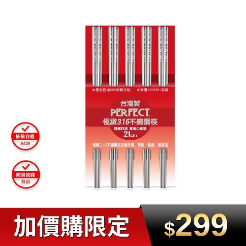 加價購限定-【PERFECT 理想】極緻316不銹鋼筷21cm 五雙