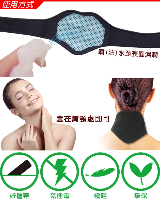 用水沾濕熱敷帶再配戴,皮膚感熱的時間更快,還可以重複使用,讓家人享受健康快樂的生活。
