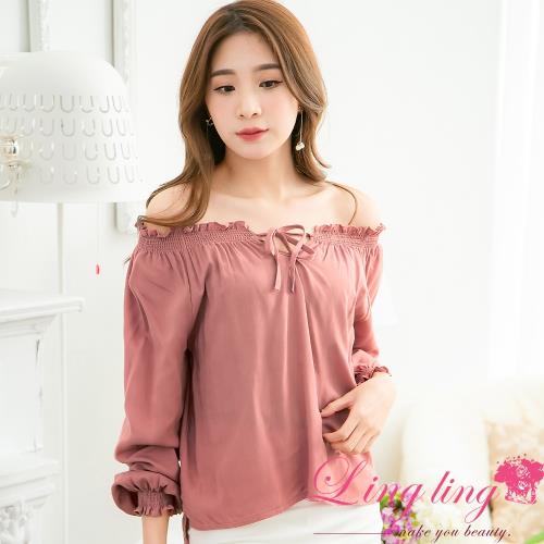 全尺碼-前短後長領袖口鬆緊式綁蝶結素色上衣(共三色)lingling